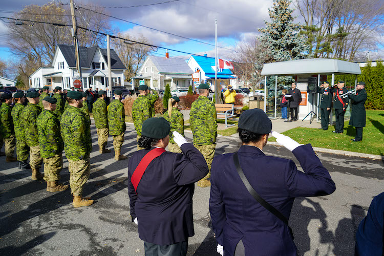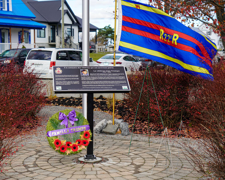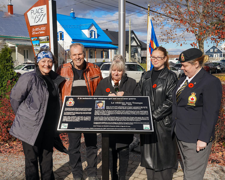 Plusieurs dignitaires ont procédé au dévoilement d’une plaque commémorative au parc du 150e, à Saint-Louis, en hommage à Jean Trempe. La Garde d’honneur du 6ᵉ Bataillon du Royal 22ᵉ Régiment était bien présente pour la cérémonie.