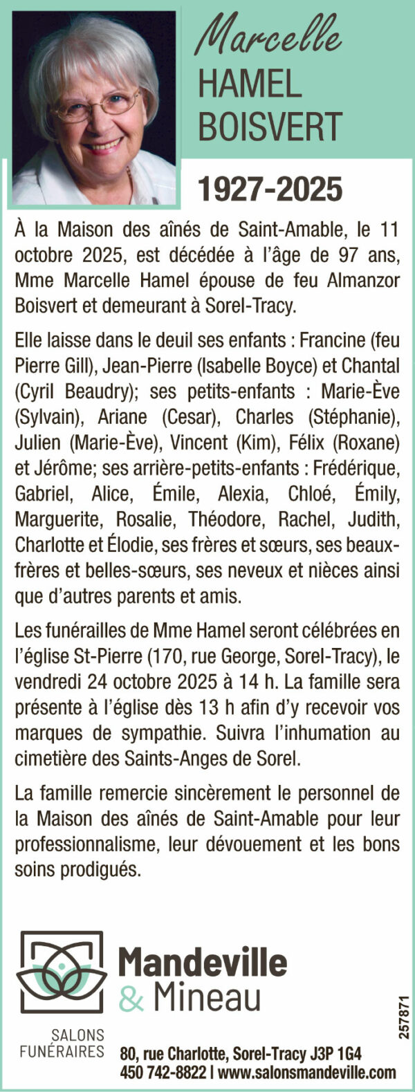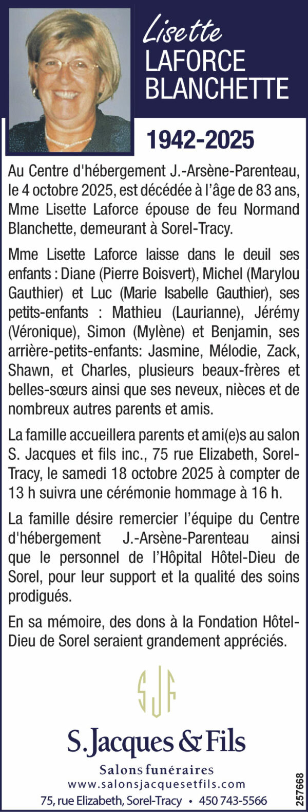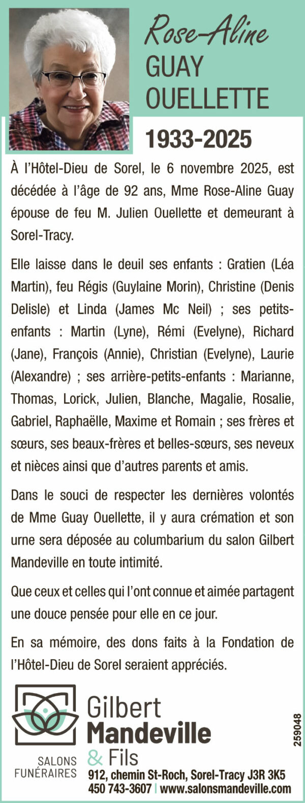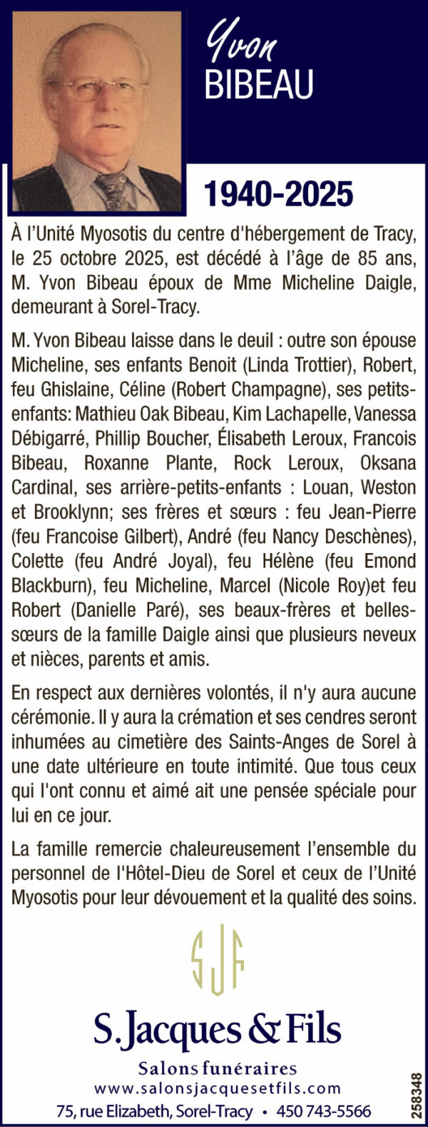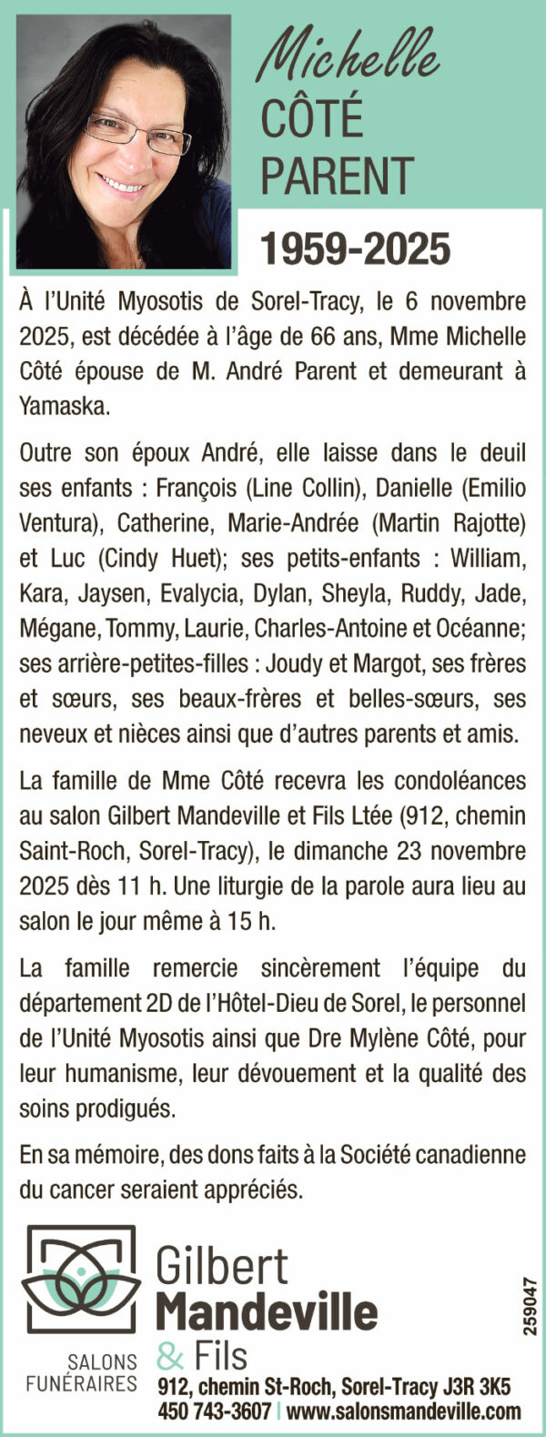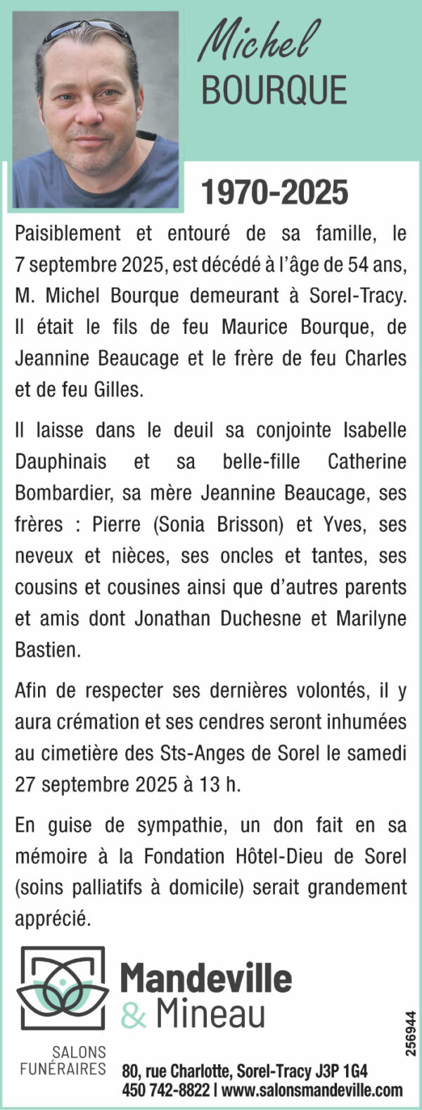 Bienvenue dans la section nécrologie SOREL-TRACY du journal Les 2 Rives. Nous diffusons les avis de décès de la région de Sorel-Tracy à chaque semaine.