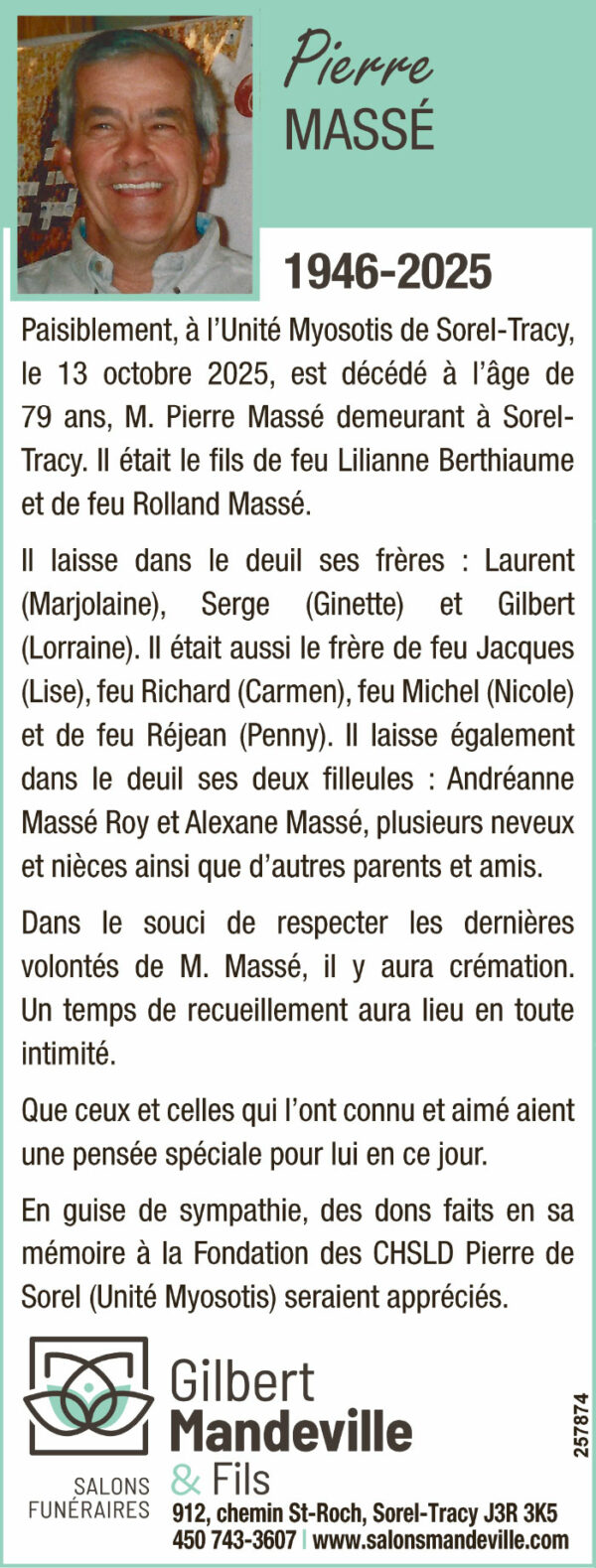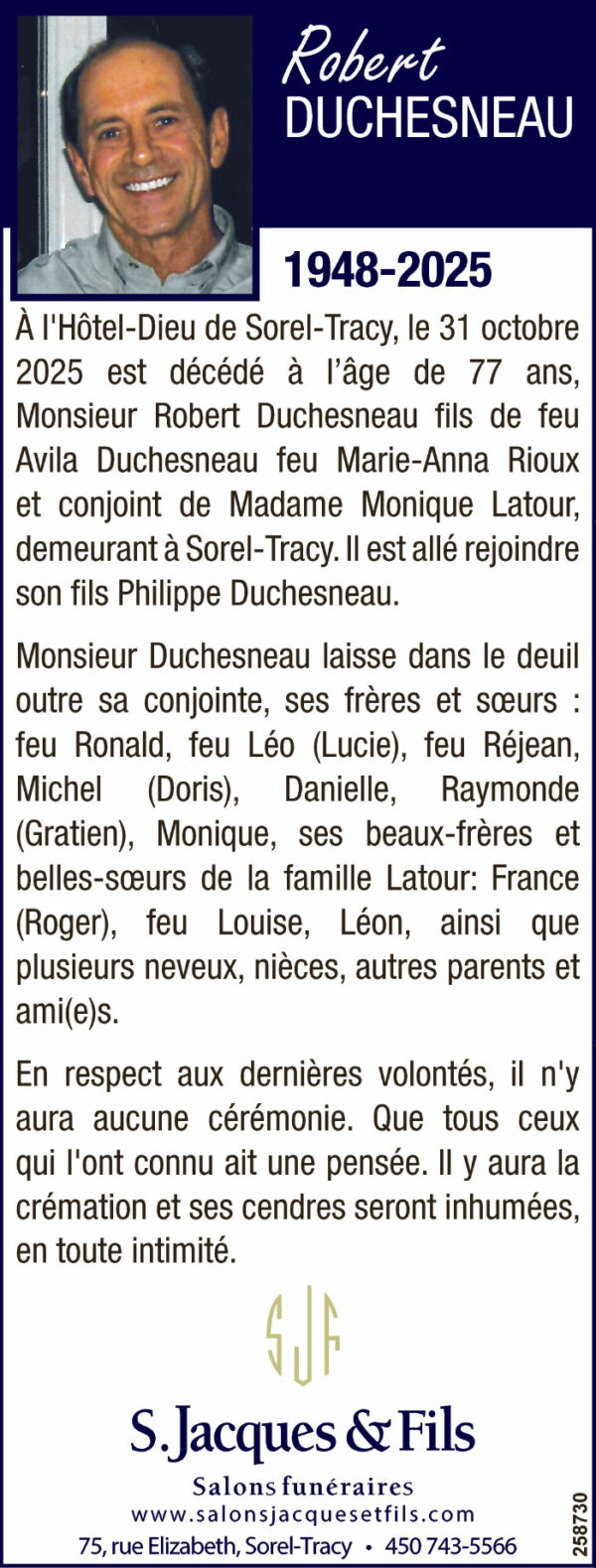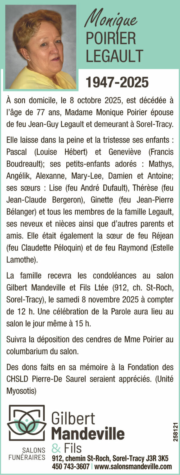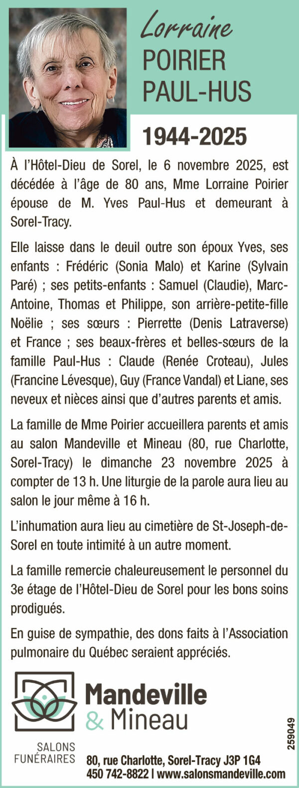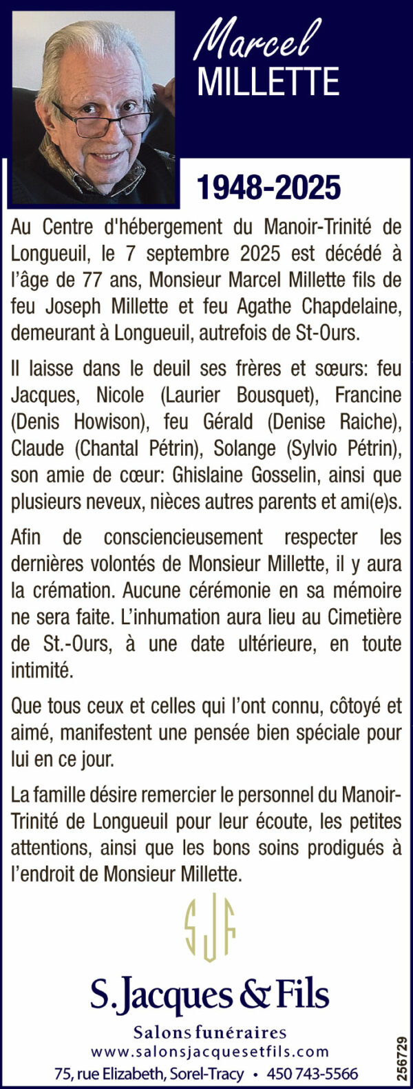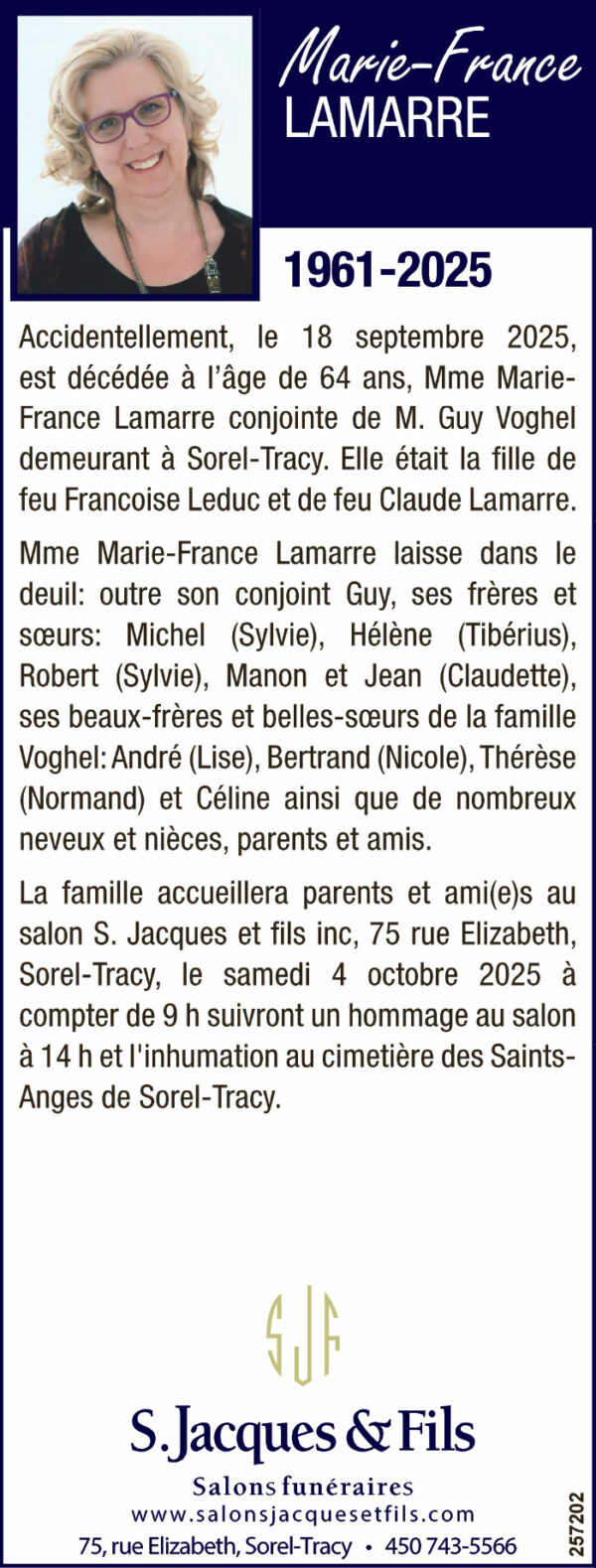 Bienvenue dans la section nécrologie SOREL-TRACY du journal Les 2 Rives. Nous diffusons les avis de décès de la région de Sorel-Tracy à chaque semaine.