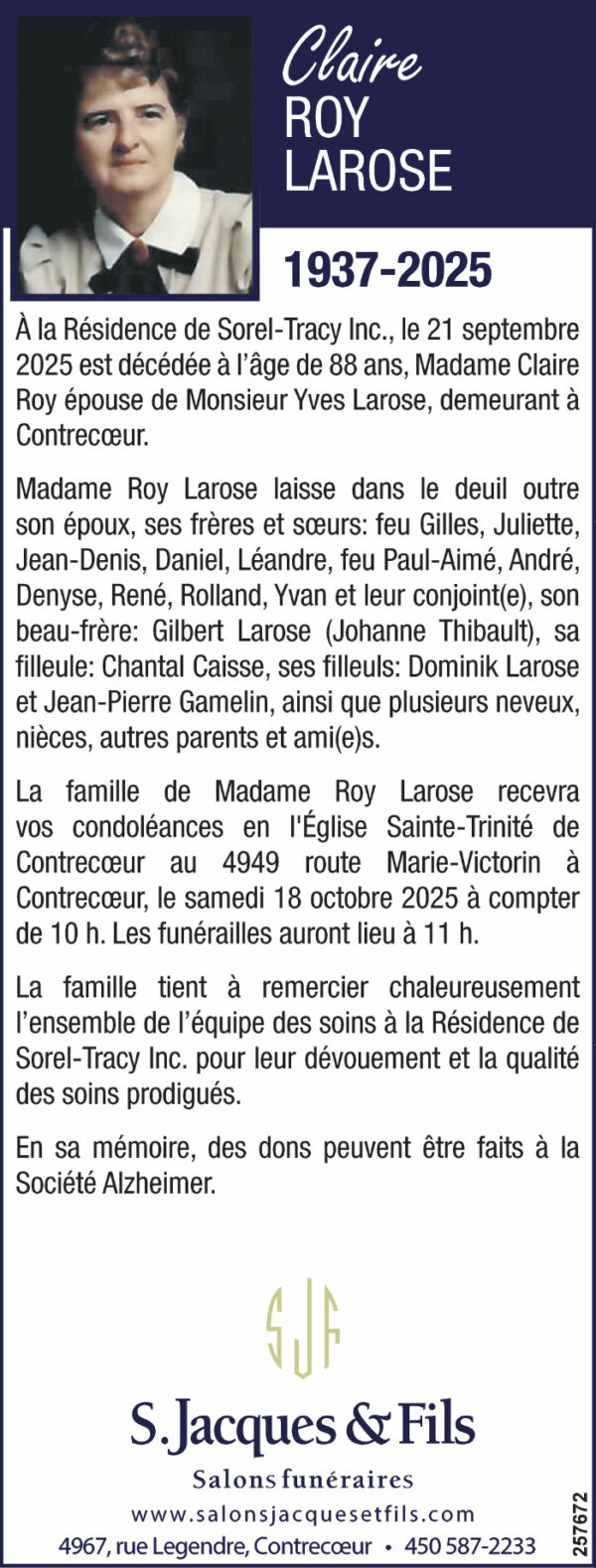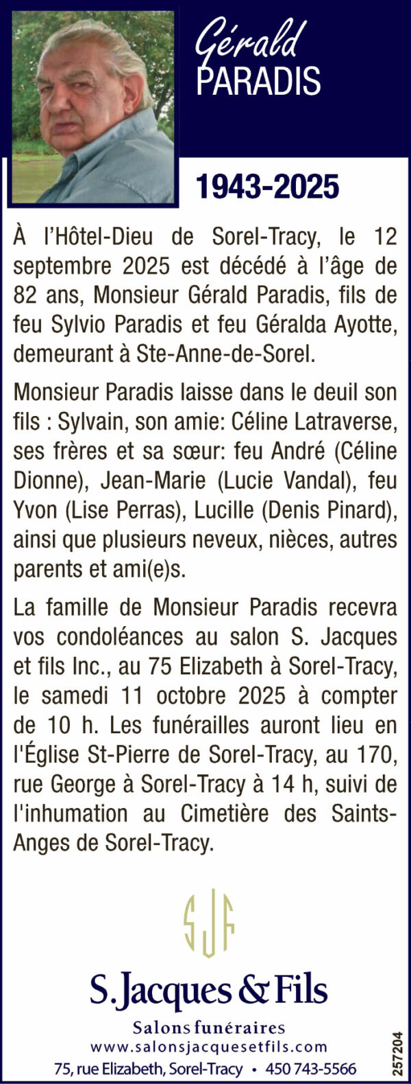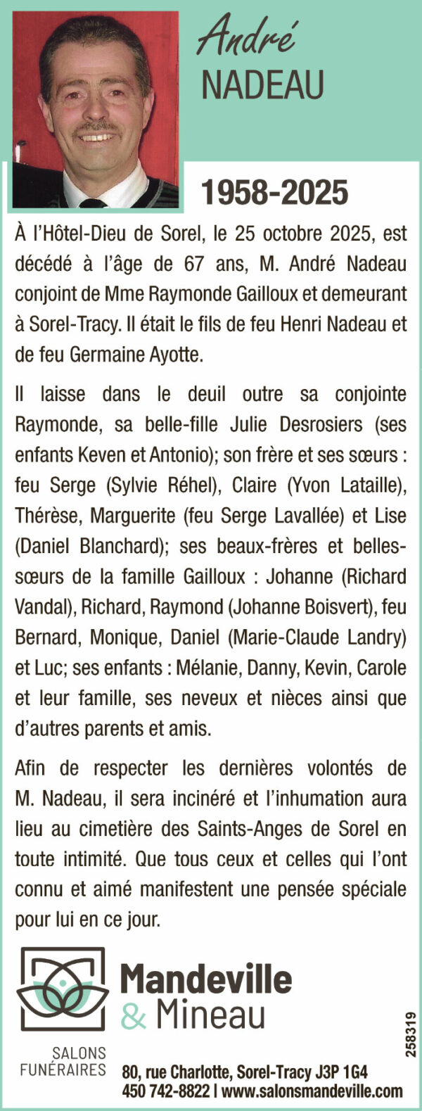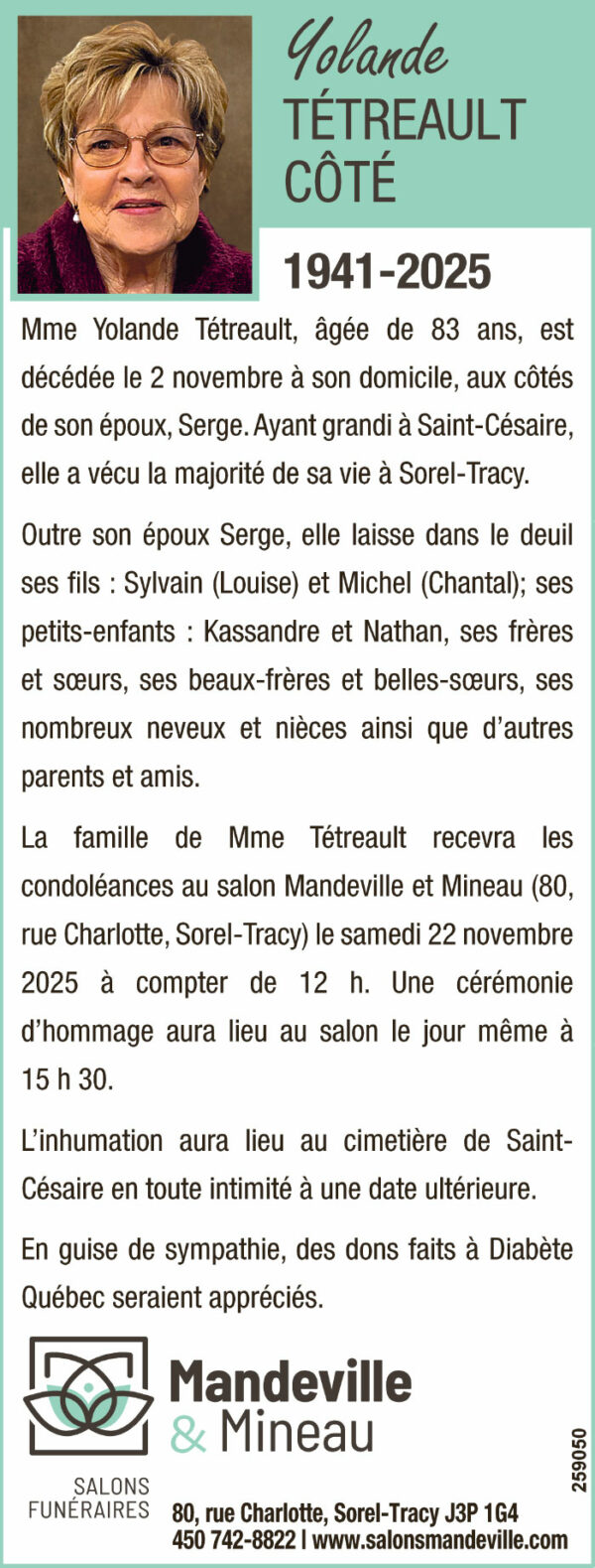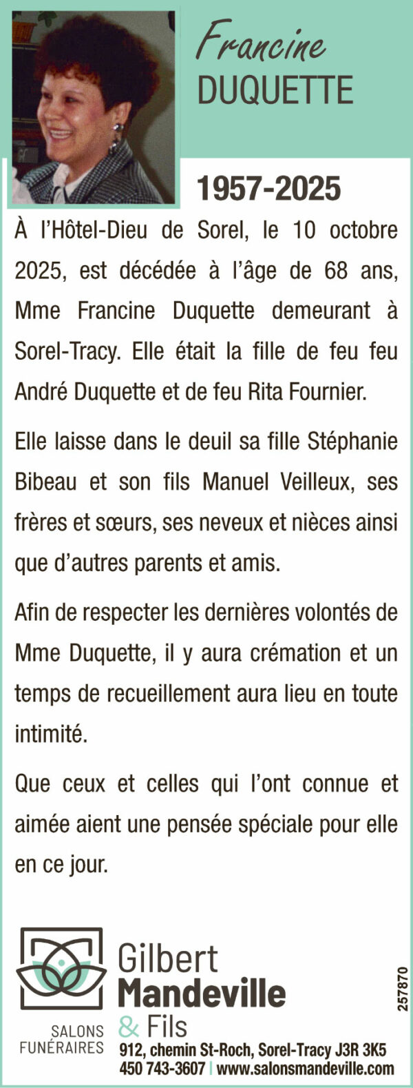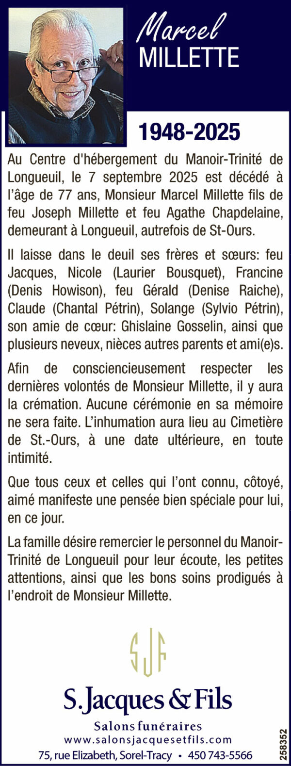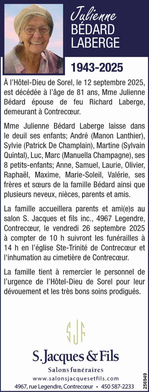 Bienvenue dans la section nécrologie SOREL-TRACY du journal Les 2 Rives. Nous diffusons les avis de décès de la région de Sorel-Tracy à chaque semaine.
