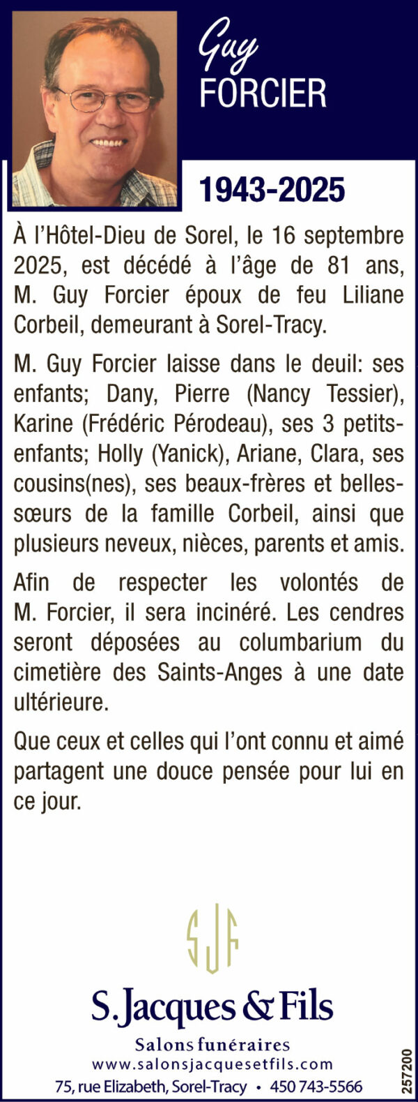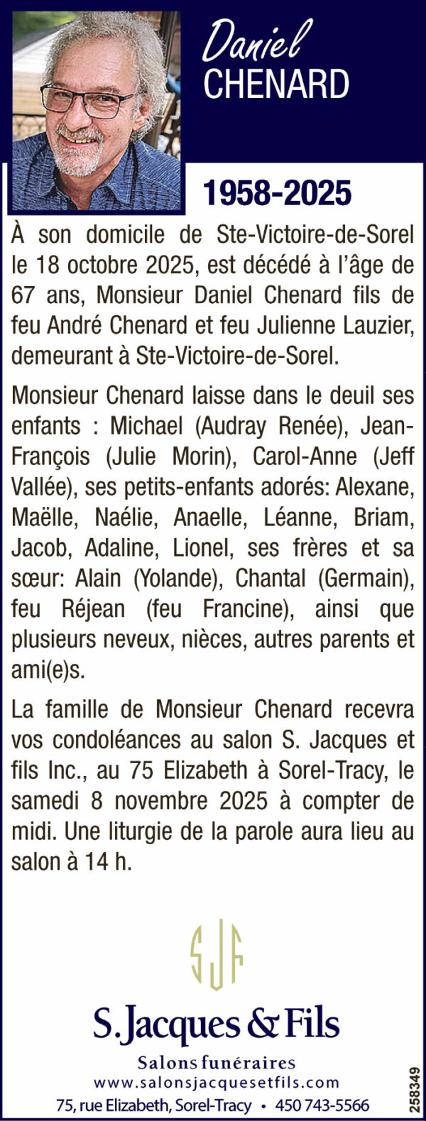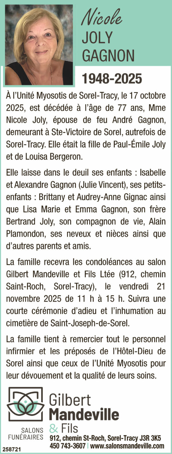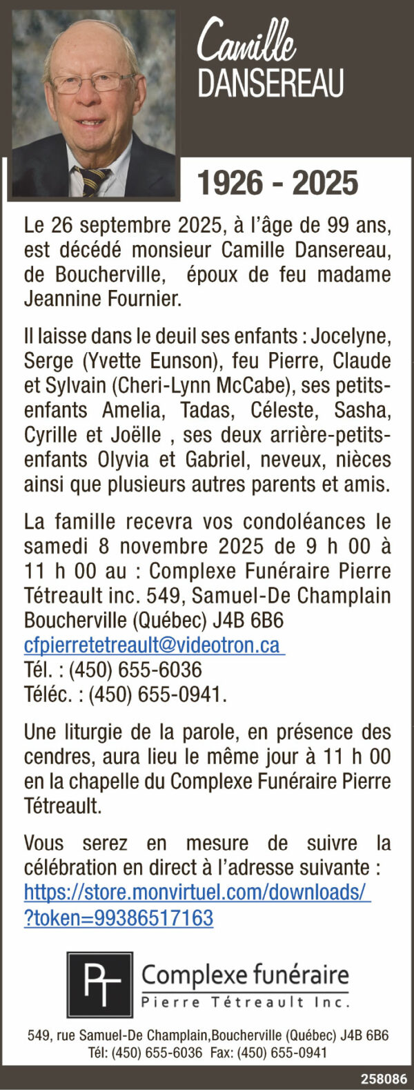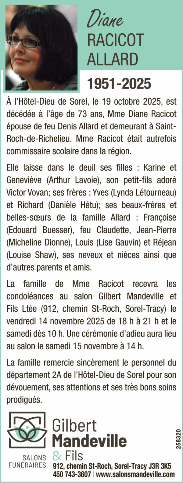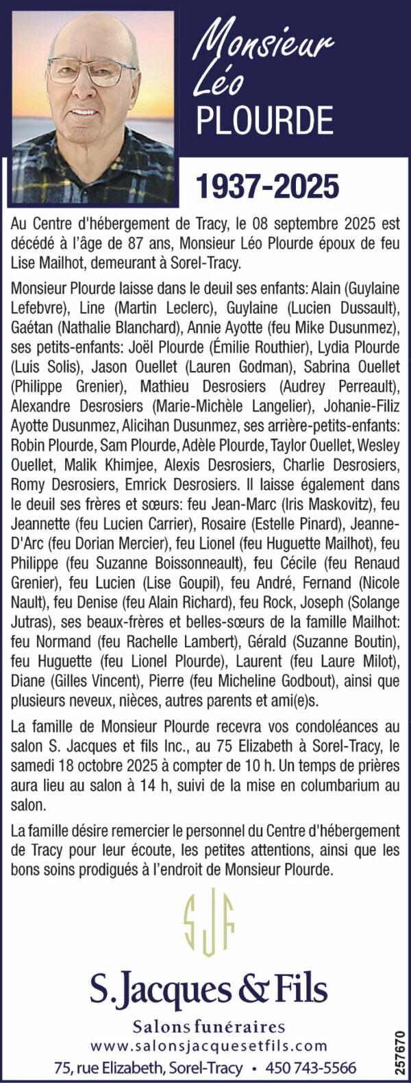 Bienvenue dans la section nécrologie SOREL-TRACY du journal Les 2 Rives. Nous diffusons les avis de décès de la région de Sorel-Tracy à chaque semaine.