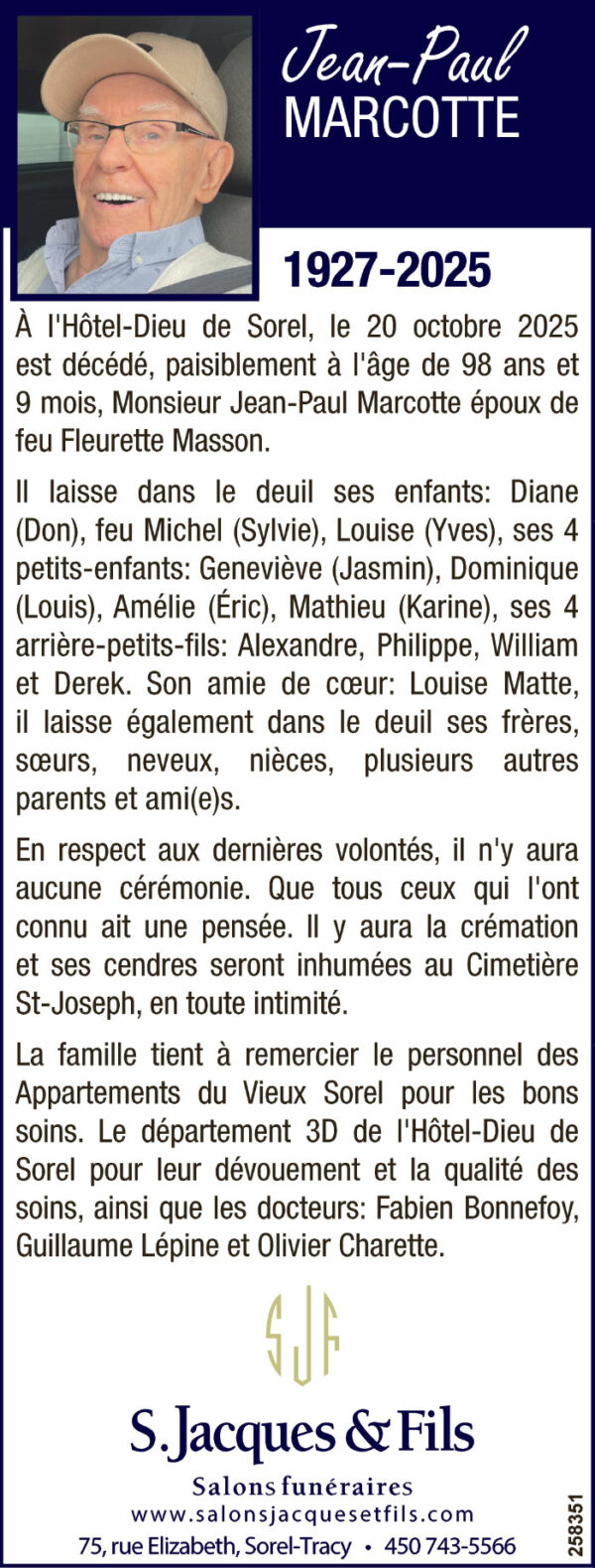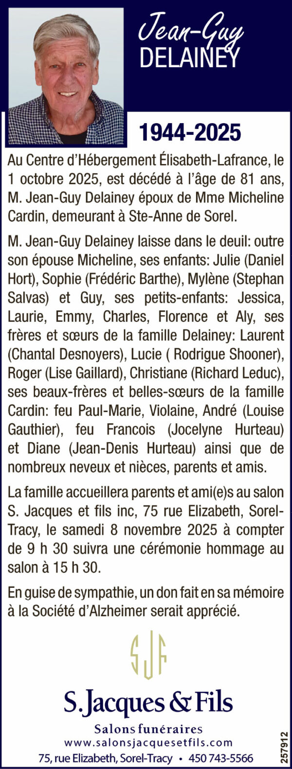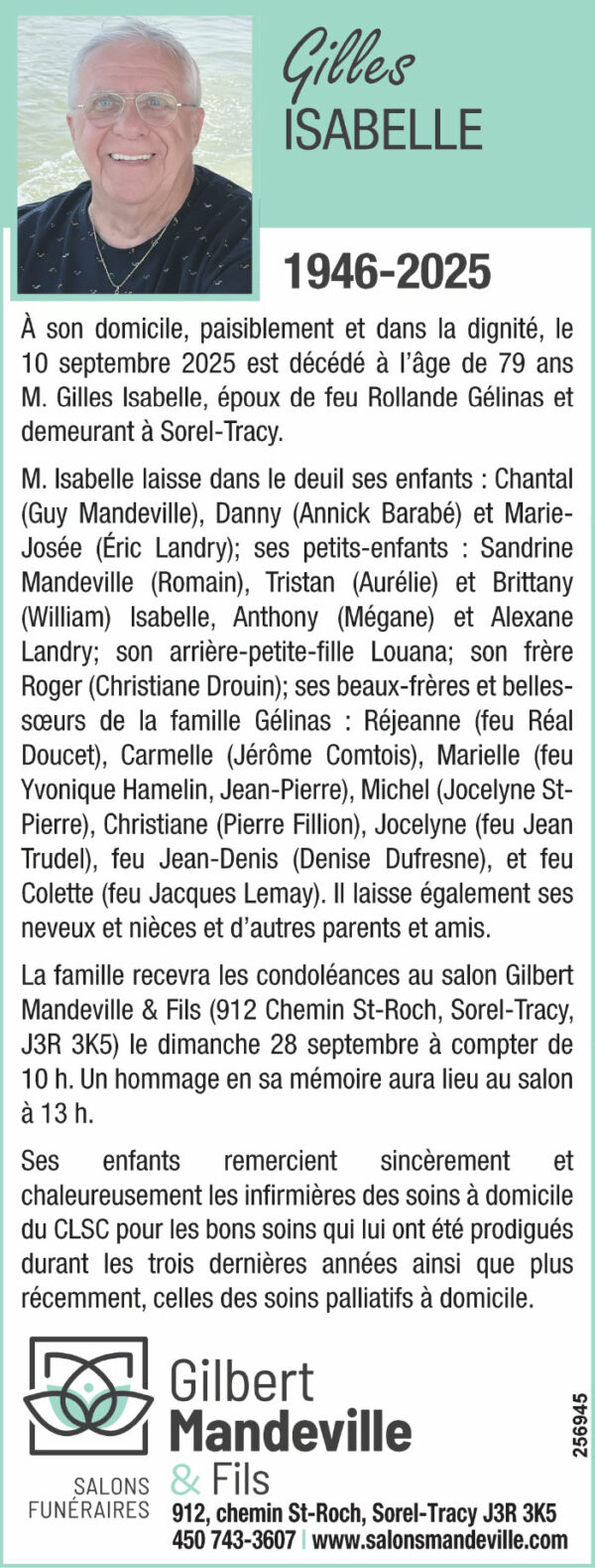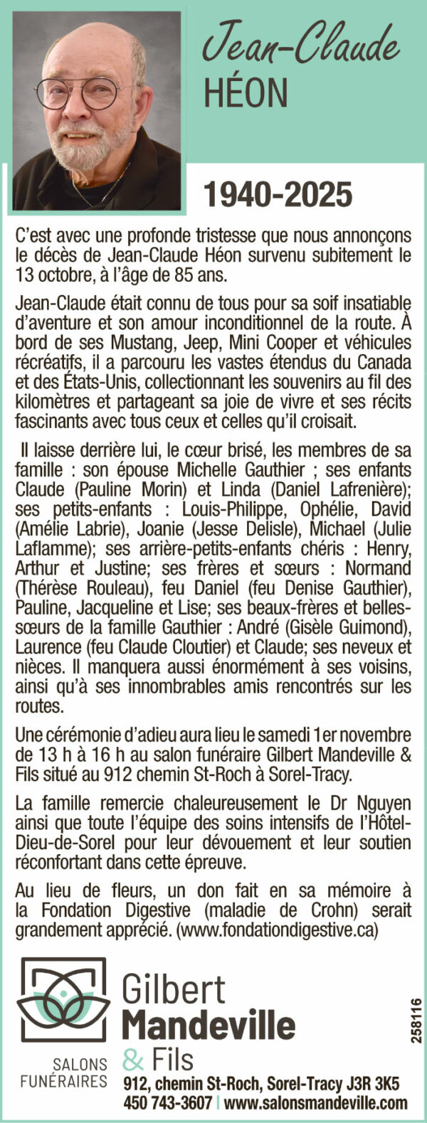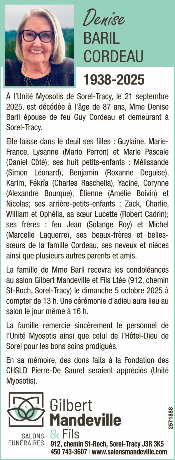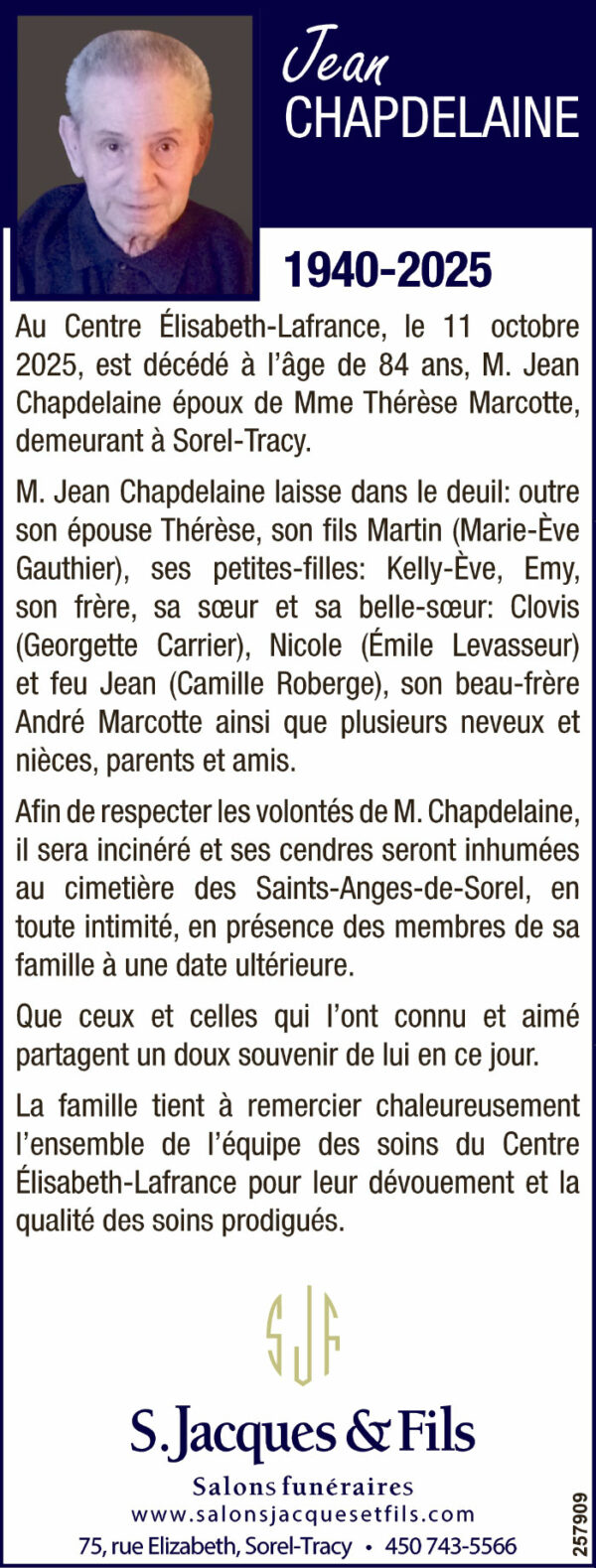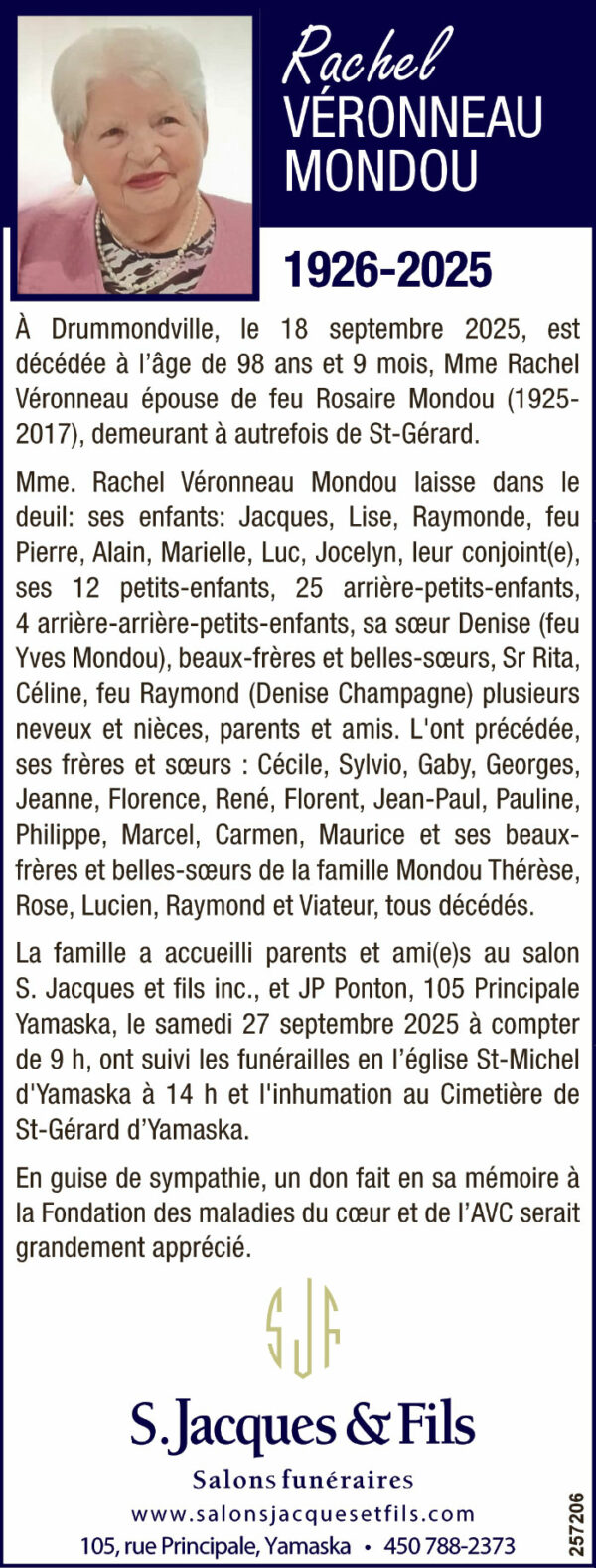 Bienvenue dans la section nécrologie SOREL-TRACY du journal Les 2 Rives. Nous diffusons les avis de décès de la région de Sorel-Tracy à chaque semaine.