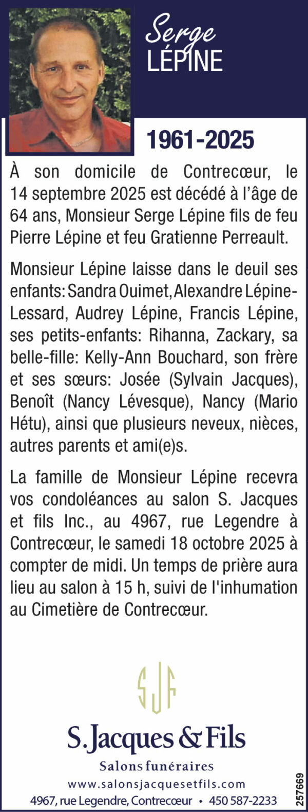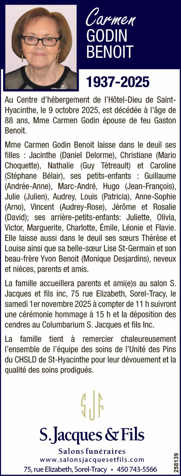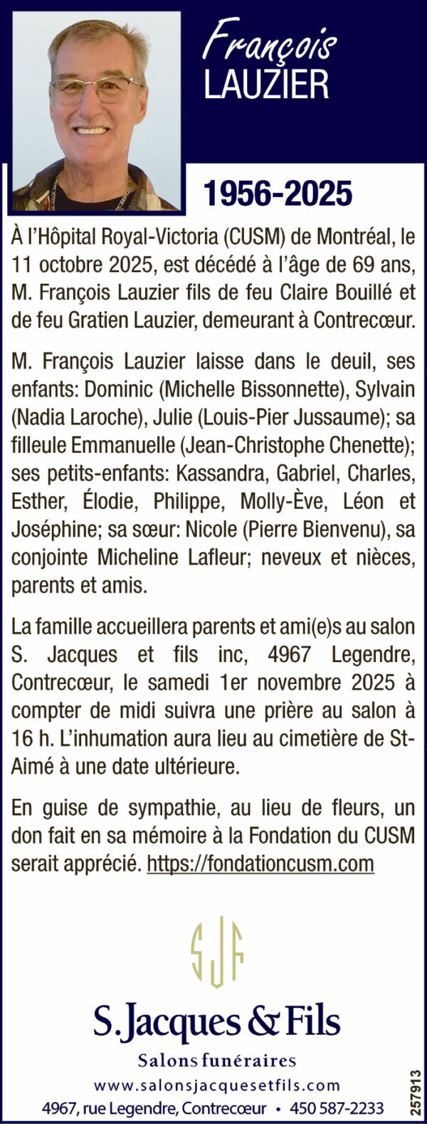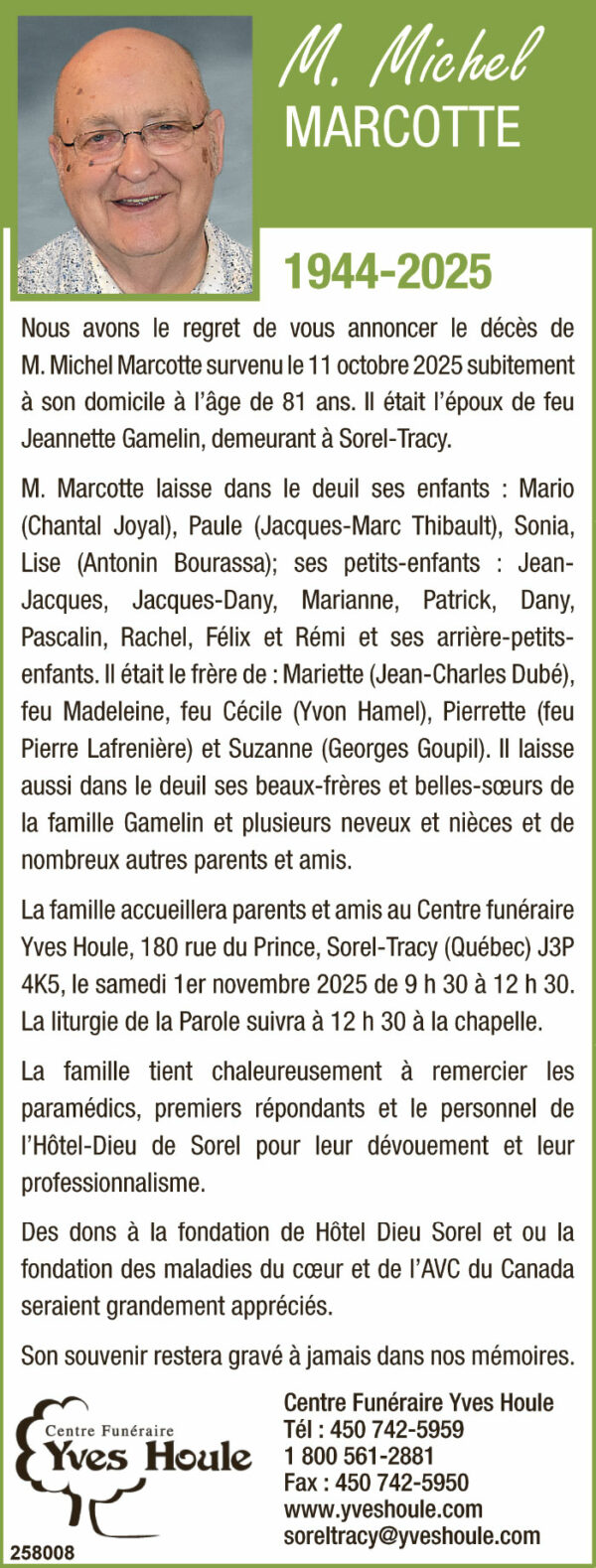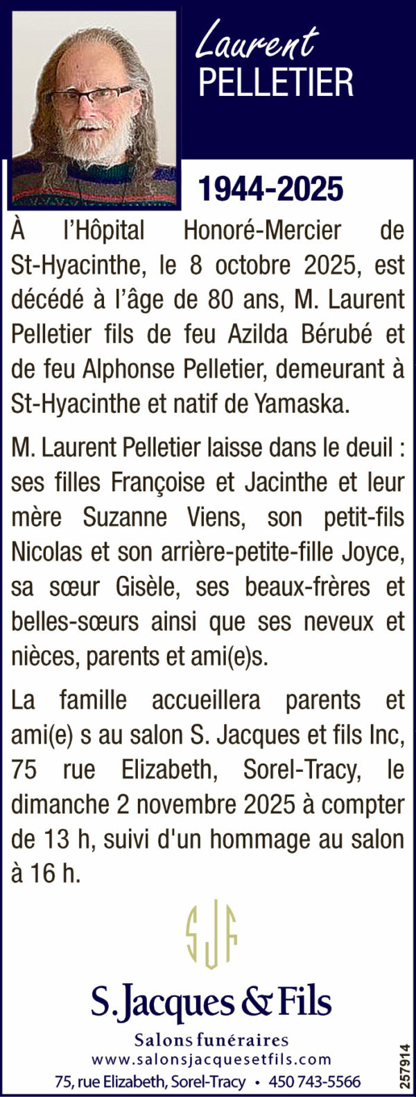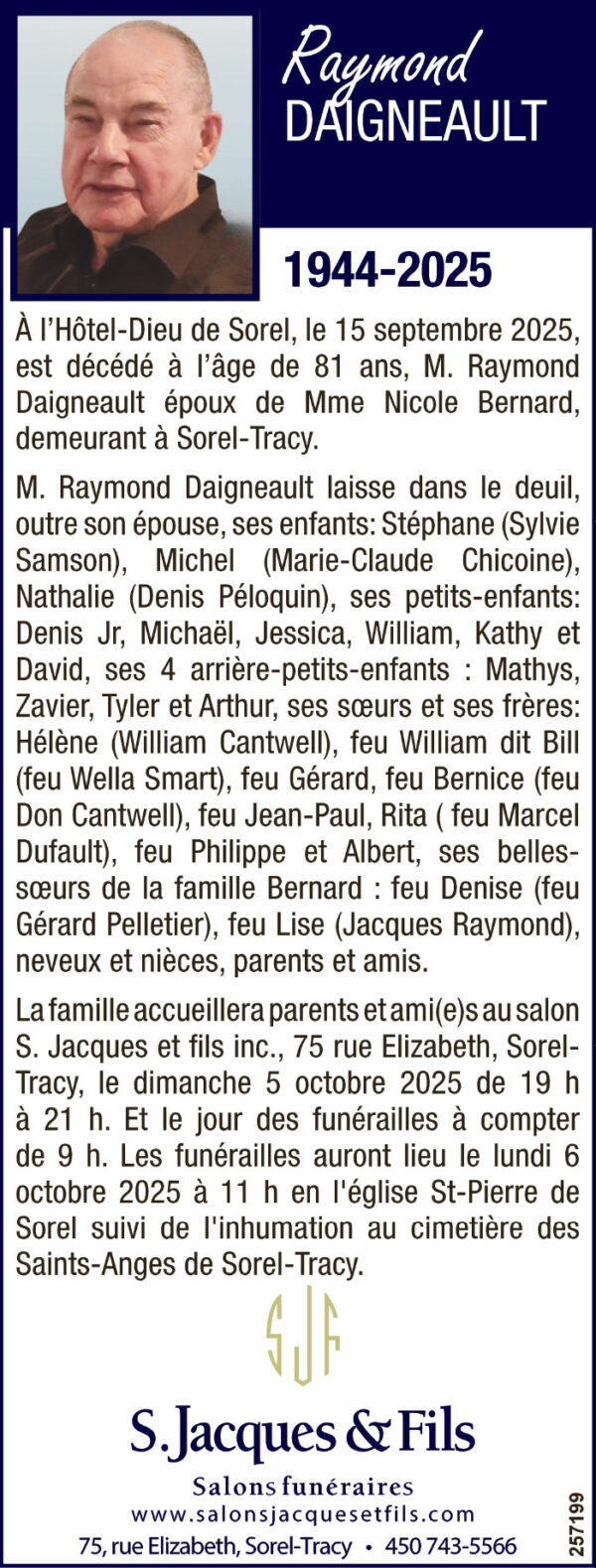 Bienvenue dans la section nécrologie SOREL-TRACY du journal Les 2 Rives. Nous diffusons les avis de décès de la région de Sorel-Tracy à chaque semaine.