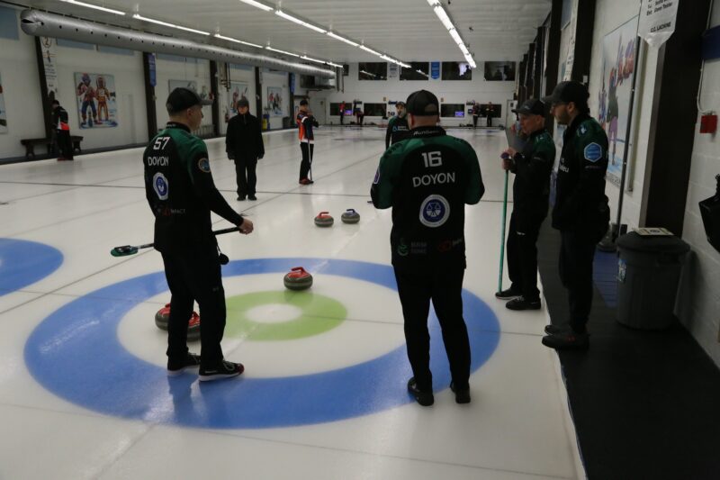 Le Club de curling Aurèle-Racine reçoit souvent des tournois du circuit Colts. Sur la photo, on voit Équipe Doyon, de Sorel-Tracy, en 2023. Photo gracieuseté